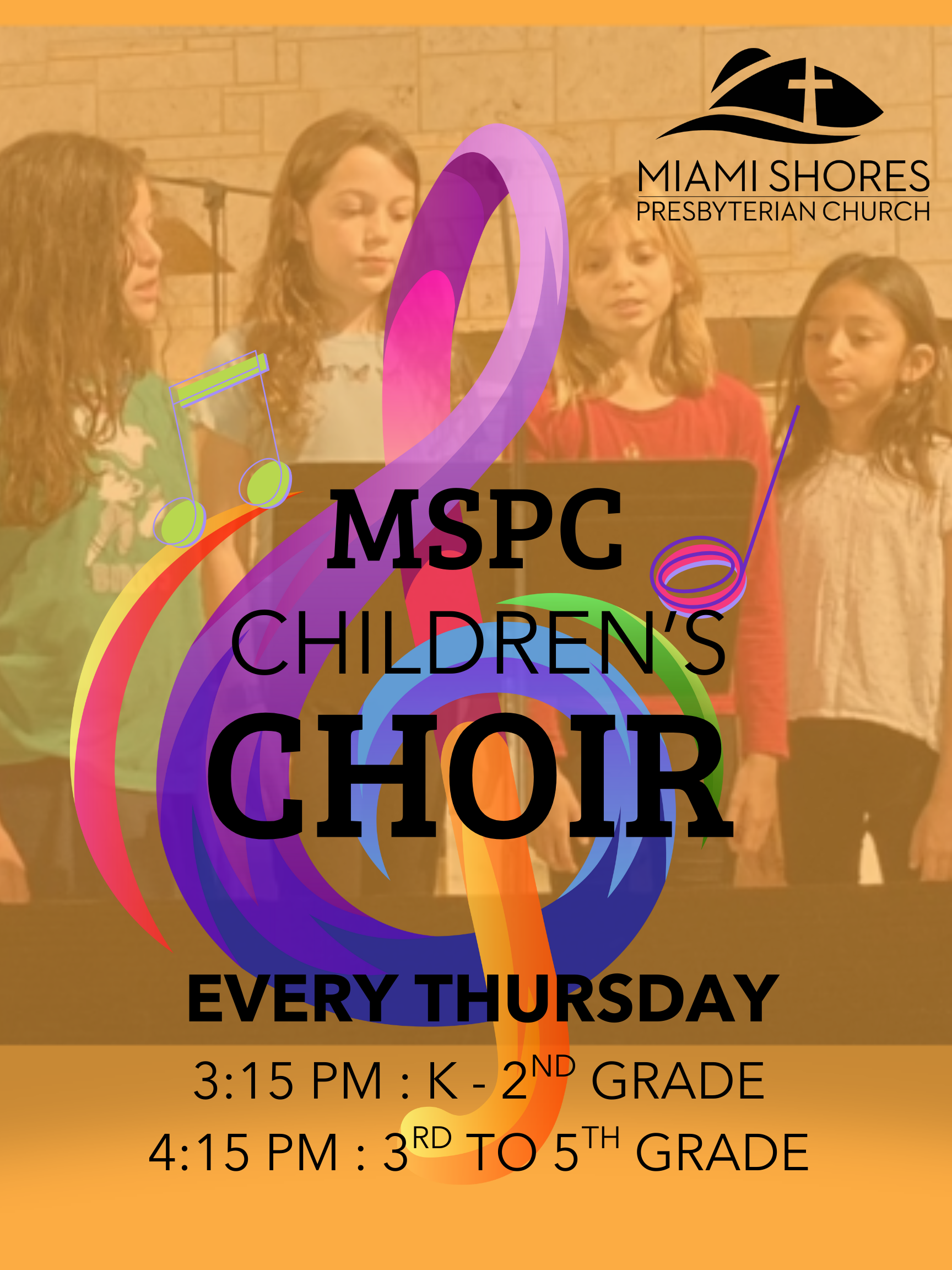 The choir will only meet during the scheduled school days. There would be no choir during MSPCS school breaks or holidays, and on the Thursdays of the school shows. Church singing: First (mostly) Sunday of every month.
